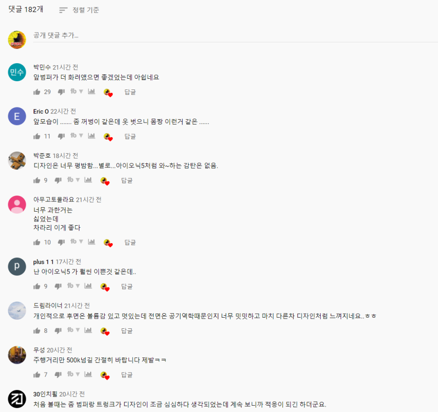 비교가 된다는 것은 기존의 알고 있었던 이미지를 떠오르게 된다는 점에서 아이오닉 5처럼 완전히 새로운 디자인이 아니라는 것이죠?