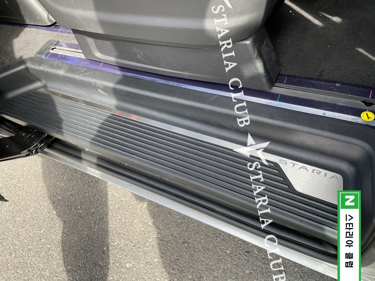 2열 출입구에 도어스커프에는 메탈 재질의 스타리아 레터링이 각인되어 있습니다.