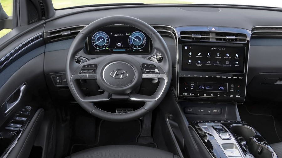 운전자 공간은 마치 신형 투싼의 계기판과 내비게이션 디자인을 매립에서 플로팅 타입으로 올린 것처럼 유사한 디자인이 적용되었습니다.