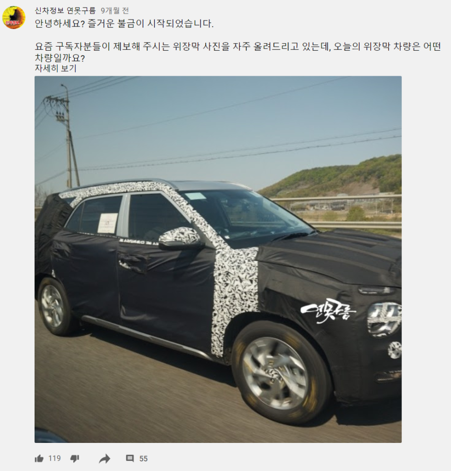 크레타는 이 정도만 보시고, 포착된 실제 차량을 보시죠?