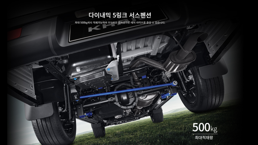5링크의 경우 부드러운 승차감을 제공합니다. 가족 용도의 픽업트럭을 원하신다면 세단급에 가까운 승차감을 제공하는 5링크가 제격입니다.