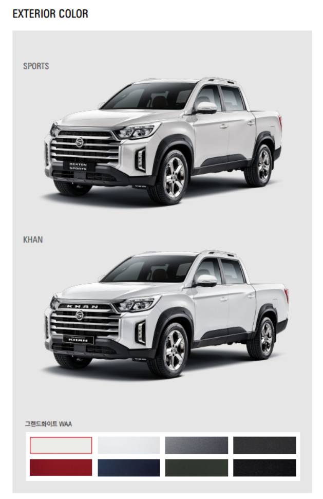 1. 디자인과 차이점(스포츠와 칸의 디자인 차이점) / 색상과 가격 / 경쟁 차량과 비교해 드렸는데, 국내에서 40만 대나 판매한 쌍용차 픽업트럭은 제가 꼼꼼하게 비교해 보니 현실적인 대안에서 최선의 선택이 아닐까 생각됩니다.