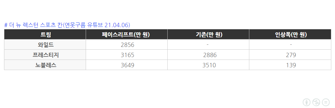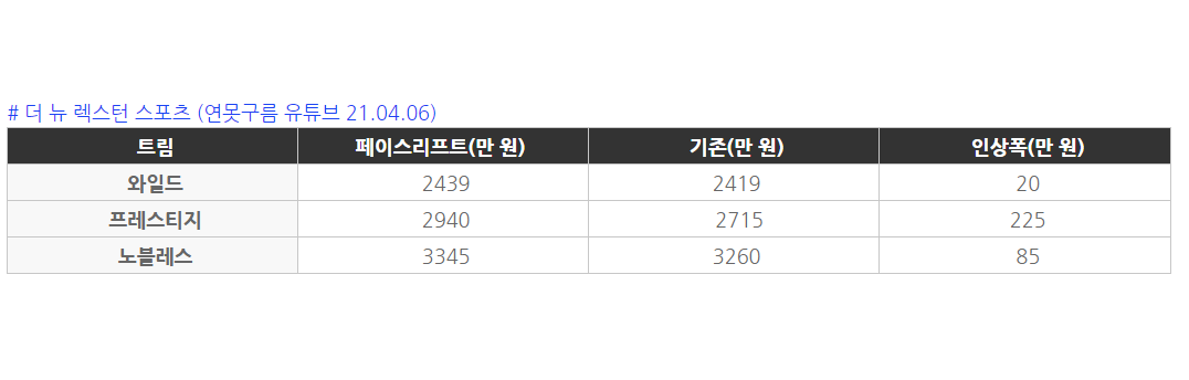 가격과 트림은 이전 영상에서 자세하게 설명해 드렸기 때문에 확정된 가격으로 요약하겠습니다.