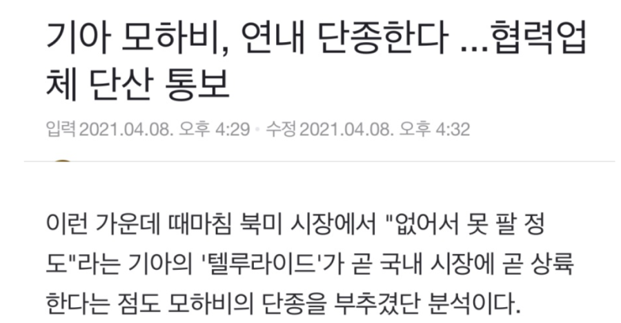 하지만 이번 모하비의 단종 소식을 사실이 아닌 오보로 확인되었습니다. 한편으로 다행이죠!