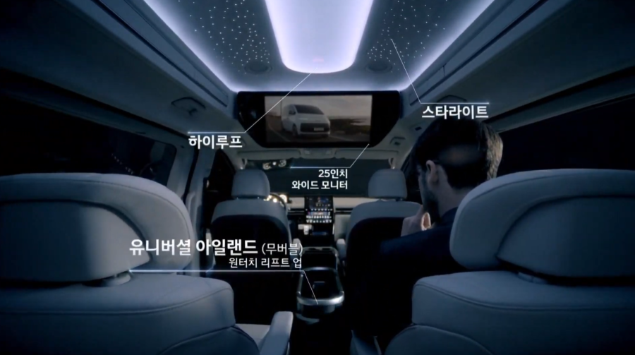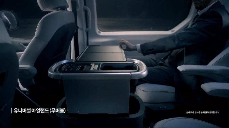 월드 프리미어 영상에서 라운지 리무진 차량도 살짝 공개가 되었는데, 2열에는 유니버셜 아일랜드, 이동식 테이블 기능이 제공됩니다.