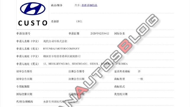 현대차 쿠스토가 중국에 상표권이 등록된 것이 확인되었습니다.