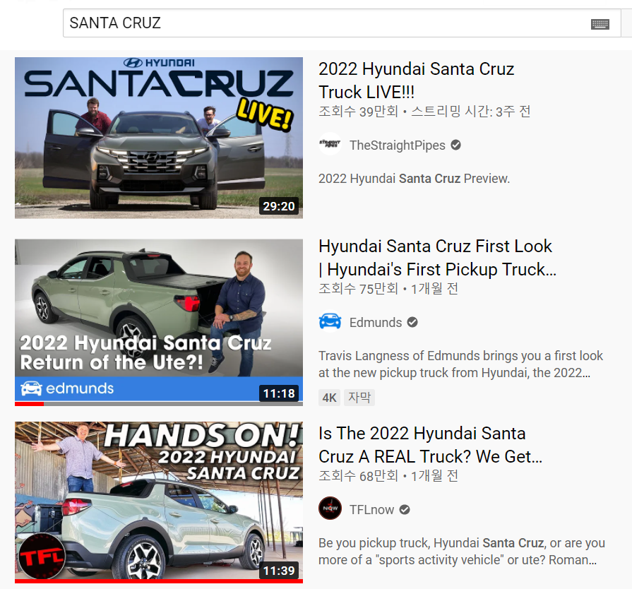 총 4개 트림을 출시했는데, 사전 계약 판매량이 공개되겠죠? 미국 시장의 판매량이 싼타크루즈의 생사를 결정하게 될 것 같은데, 추가적인 소식도 알려드리겠습니다.