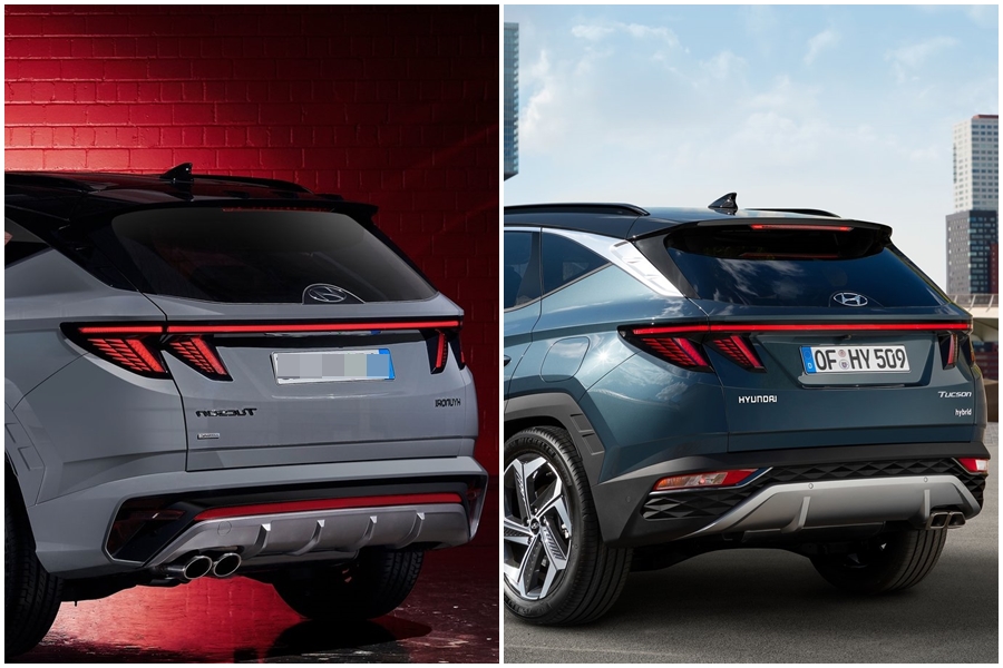왼쪽이 N Line 오른쪽이 투싼입니다. 히든 라이트 영역이 조금 다른 것을 알 수 있죠?