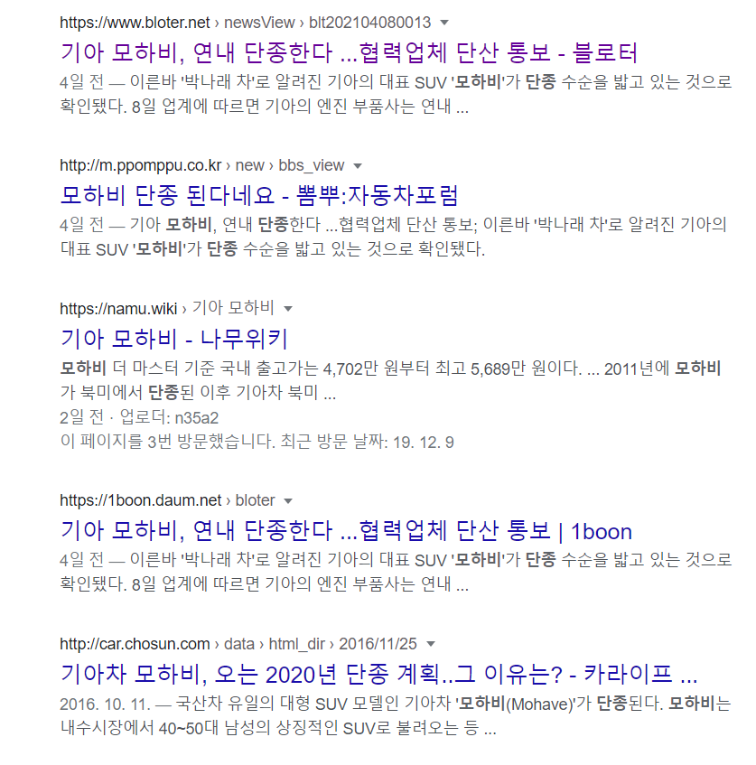 얼마 전 모하비 단종 루머로 인해서 자동차 시장이 시끄러웠죠?