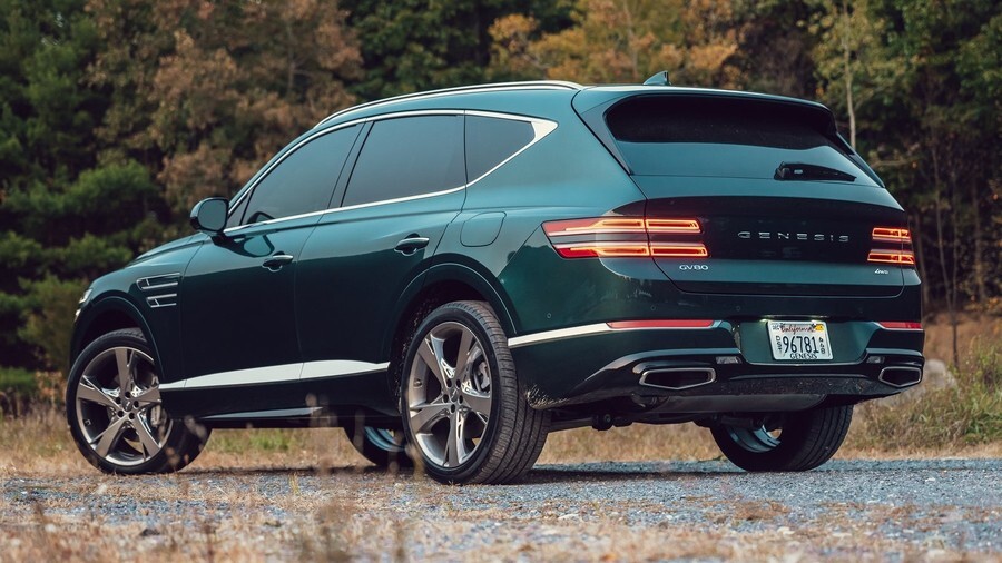 안쪽으로 진행될수록 좁아지는 테일램프 디자인과 한 줄로 동일한 두께로 이어지는 GV70은 크로스오버와 SUV에 대한 디자인 차이점을 발견할 수 있습니다.
