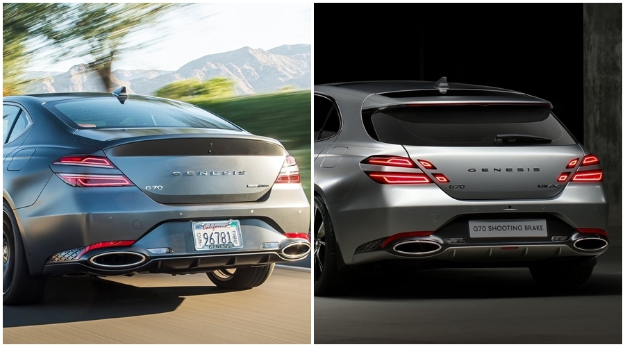 이후 공개된 제네시스 최초의 G70 슈팅 브레이크는 G70 디자인을 베이스로 만들어졌는데, 차이점이라면 제네시스 브랜드의 디자인 특징을 이어가기 위해서 트렁크까지 테일램프를 확장한 것을 알 수 있어요!