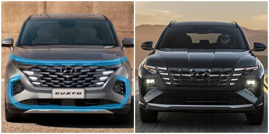 그릴 중앙에는 커다가 로고를 볼 수 있으며, 안개등 위치에 쿠스토는 안개등이 제공되고 투싼은 헤드램프가 위치하고 점에 차이가 있죠!