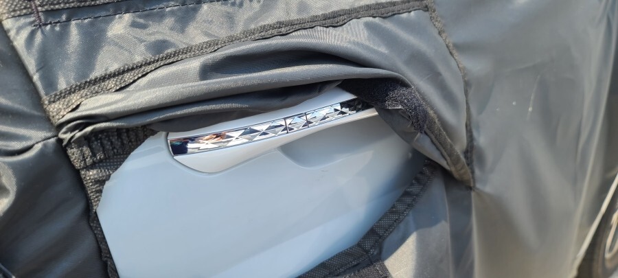 양옆으로 펼쳐지는 방식이 아니라 앞뒤로 열리는 슬라이딩 방식이라서 도어 손잡이가 가까운 위치에 제공됩니다.