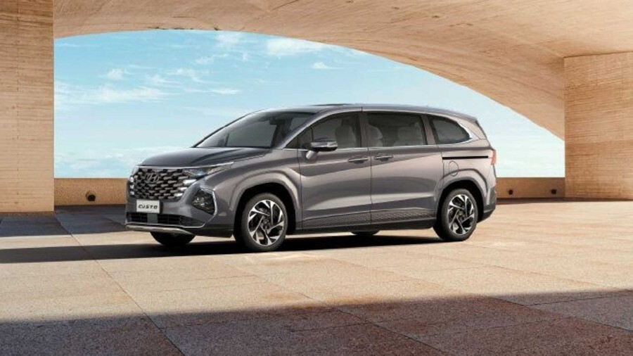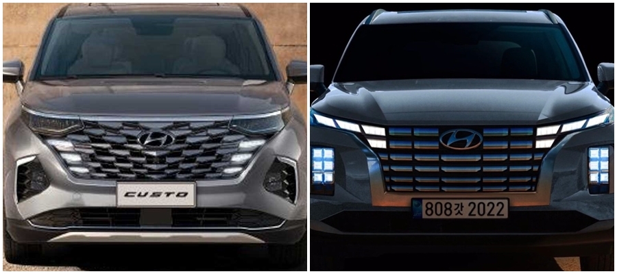 쿠스토의 크기는 대형 SUV 팰리세이드와 거의 비슷한데, 하지만 미니밴 디자인이 보닛이 짧은 박스카 스타일이라서