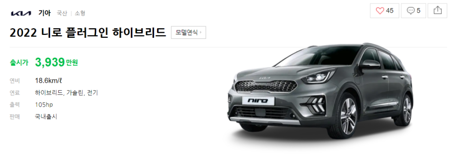 하지만 니로는 플러그인 하이브리드를 국내 시장에 출시하고 있습니다.