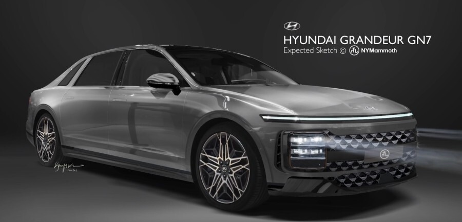 뉴욕맘모스님의 예상도를 보면 스타리아 주간주행등과 동일한 디자인을 그대로 신형 그랜저에 이식한 것 같은 요소를 볼 수 있는데, 1세대 그랜저의 네모네모한 디자인과 스타리아에서 선보인 새로운 전기차 시대의 디자인 요소를 믹스한 디자인이 신형 그랜저인 점을 예상해 볼 수 있네요!