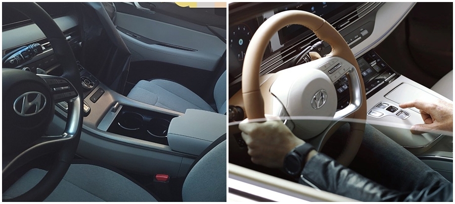 기존 팰리세이드의 스티어링 휠은 최신 차량에서 제공되는 하단 부가 오픈된 디자인이 아닌 아래쪽이 막힌 3스포크 디자인인데...