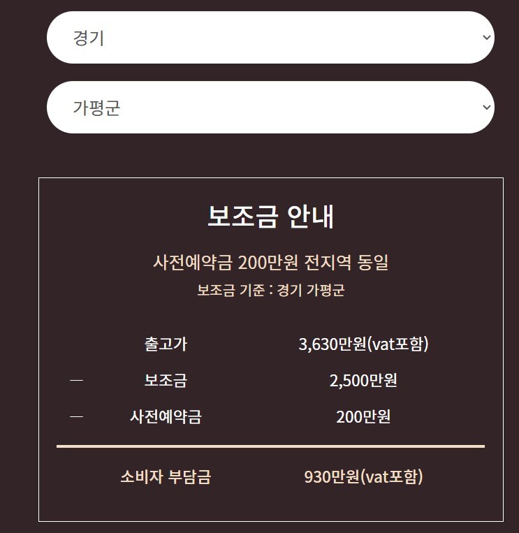 이렇게 보조금까지 조회가 다 되었다면 사전예약 과정이 모두 끝났습니다.
