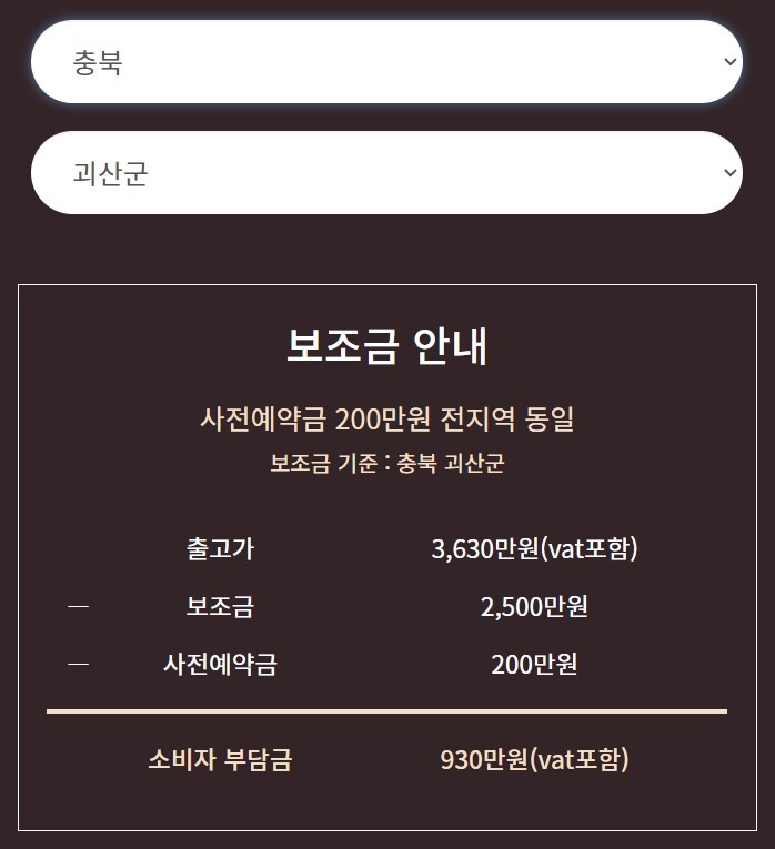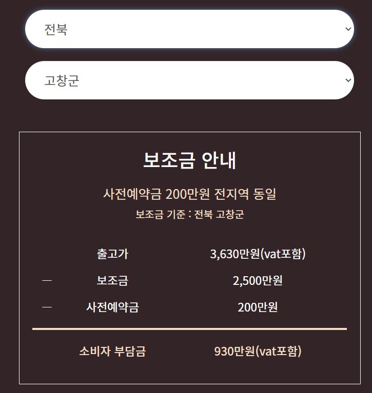 전북의 경우도 930만 원에 구입이 가능하군요!