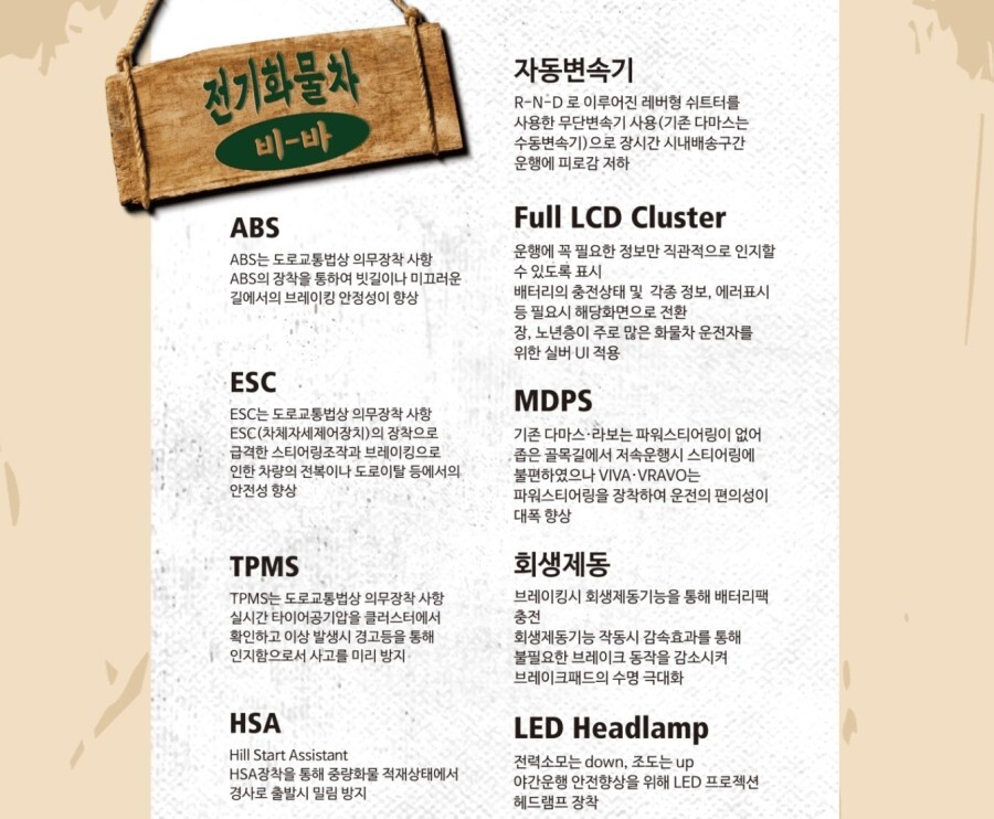 다마스의 경우 예상보다 전복 사고가 좀 있었는데, 비바는 ESC 기술과 무거운 배터리가 차량 바닥에 위치하면서 전복 사고가 크게 줄었다고 하네요!