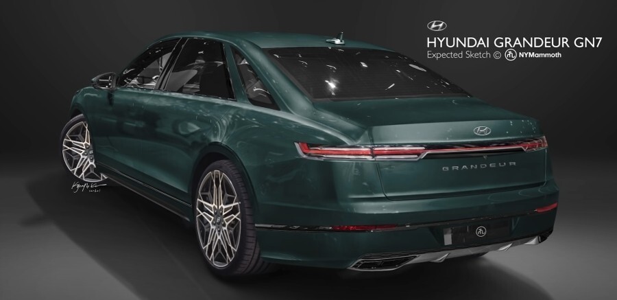 1세대 그랜저를 연상시키는 측면부 디자인의 핵심인 오페라글라스 디자인을 볼 수 있으며 한 줄로 길게 연결되는 테일램프 디자인도 예상도를 통해서 빠르게 공개했습니다.
