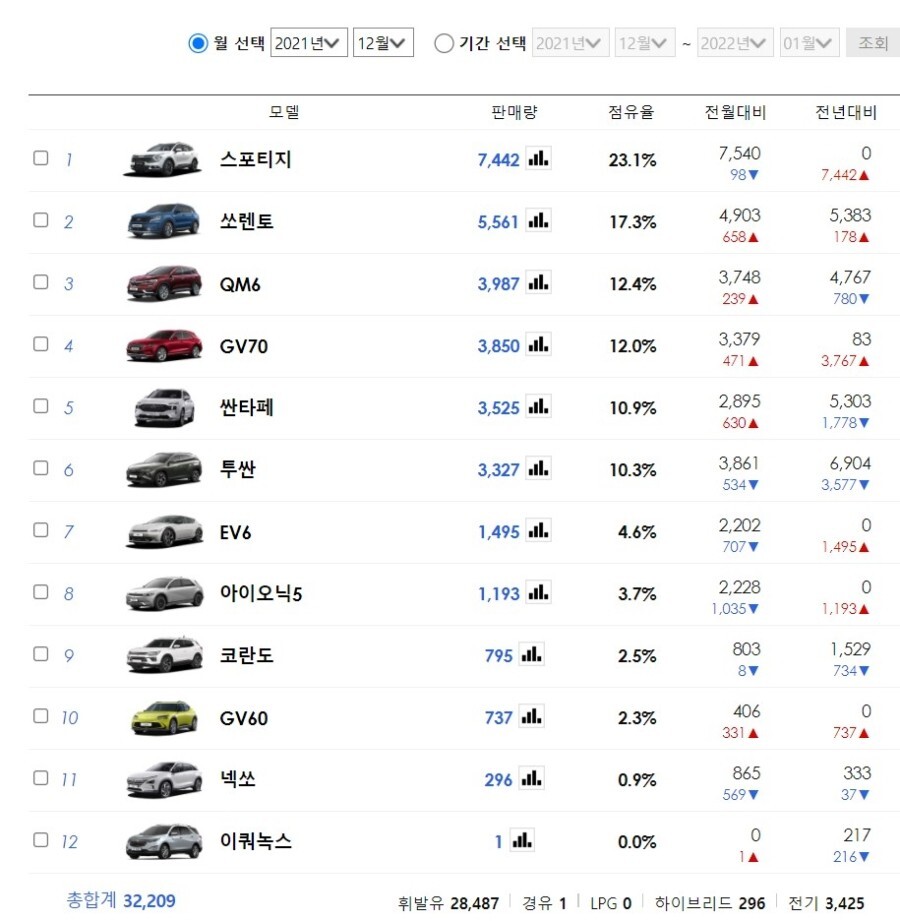 지난 12월의 판매량은 고작 1대이고, 21년도의 판매량은 553대로 한 달에 약 46대 정도 판매가 되었습니다.