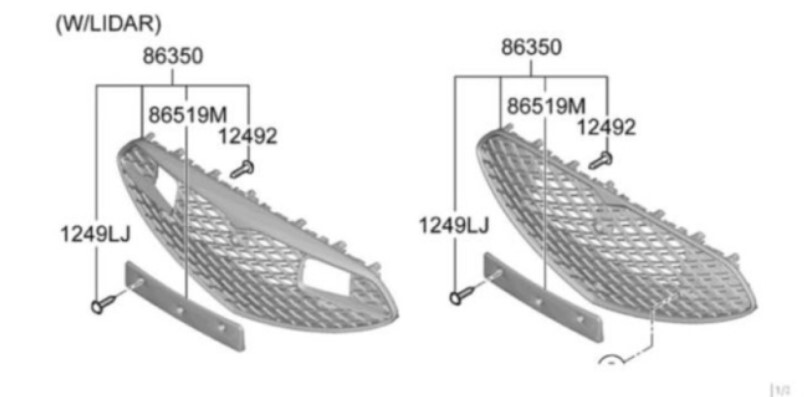 기술 자료를 찾아보니 LIDAR 라고 적혀 있는 그릴을 볼 수 있네요.