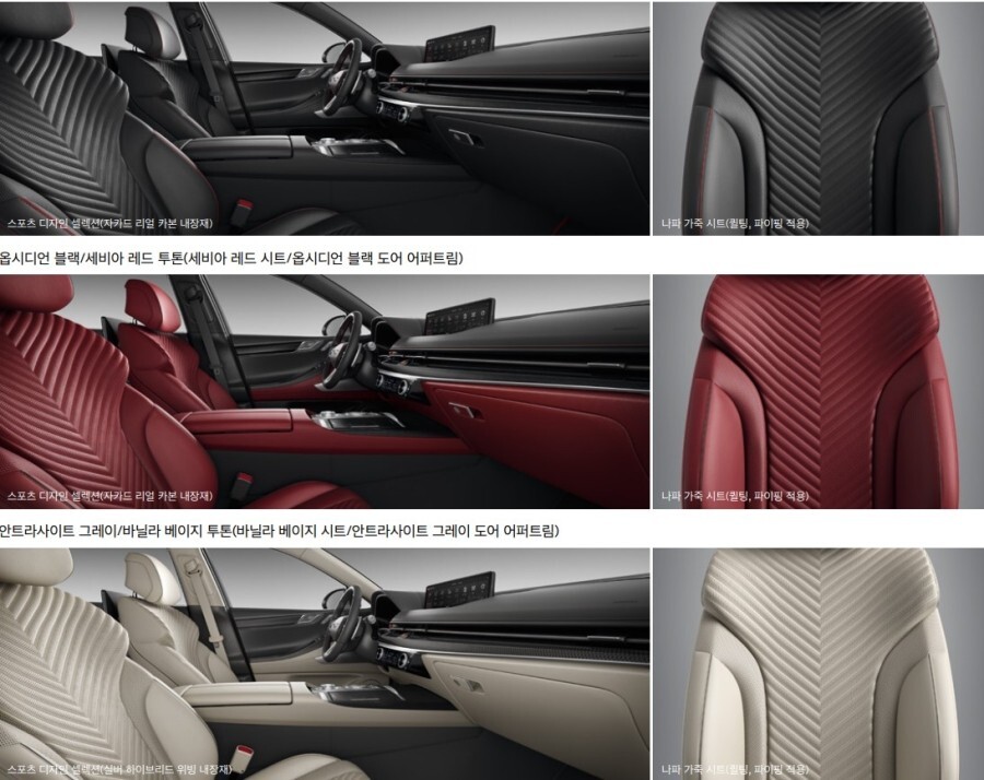 소재에도 차이가 있는데, 알칸타라와 같은 마감재로 예상되는데, 암레스트 콘솔 덮개와 도어트림에