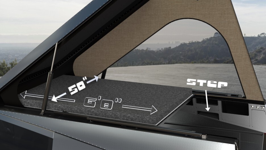 사이버 트럭의 후면 공간 전체를 감싸는 루프가 팝업되면서 커다란 공간을 제공하네요!