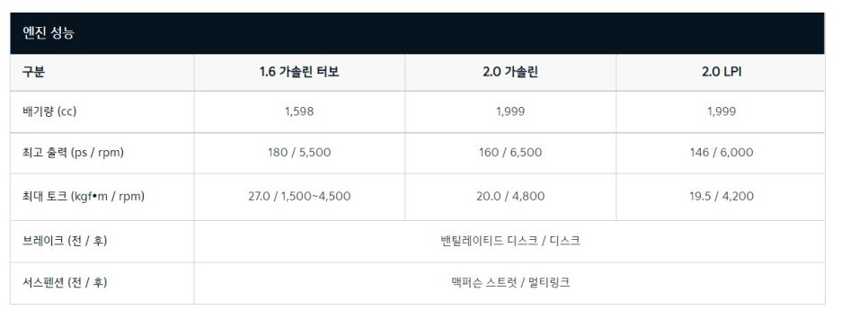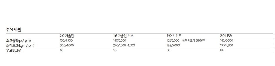 크기나 실내공간, 파워 트레인의 스펙으로 본다면, 유사 범위라서 확실한 경쟁 차량이라고 할 수 있겠죠?