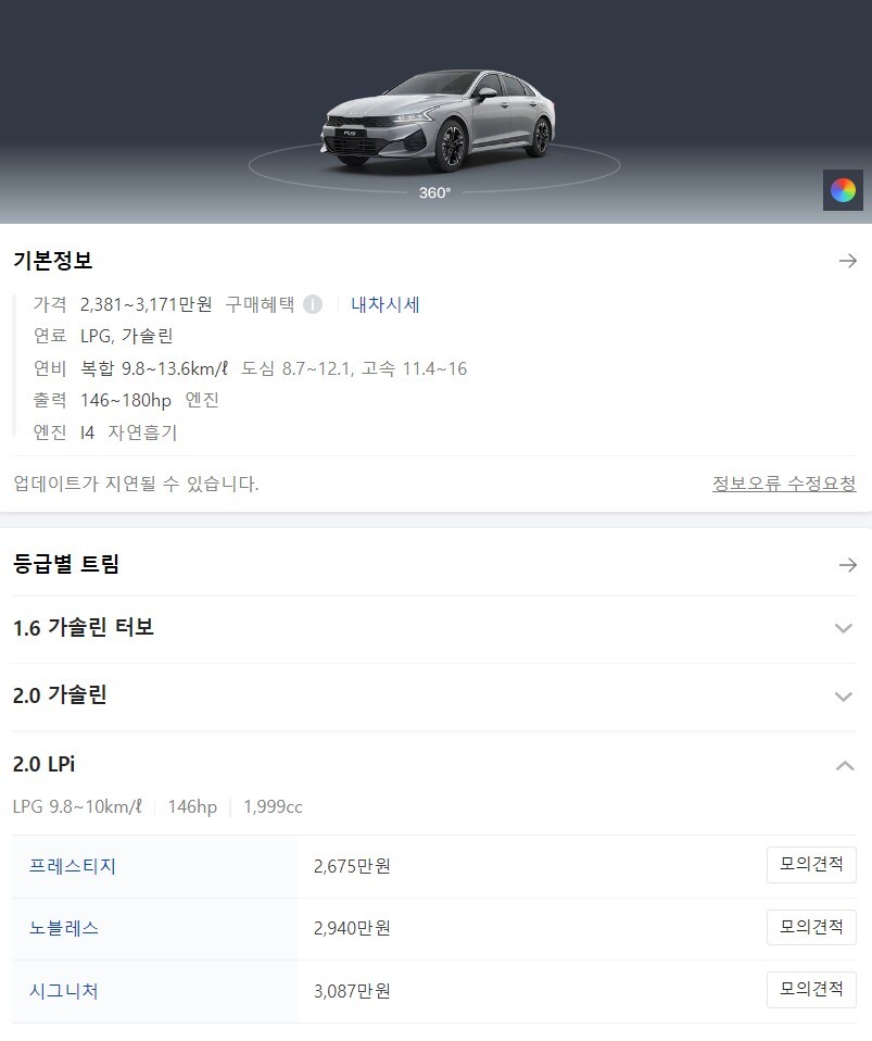 K5 LPG를 통해서 어느 정도 유추가 가능합니다.