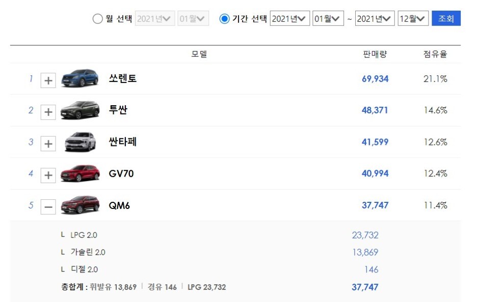 친환경 차량인 하이브리드나 LPG는 더욱 큰 사랑을 받게 될 것 같네요.