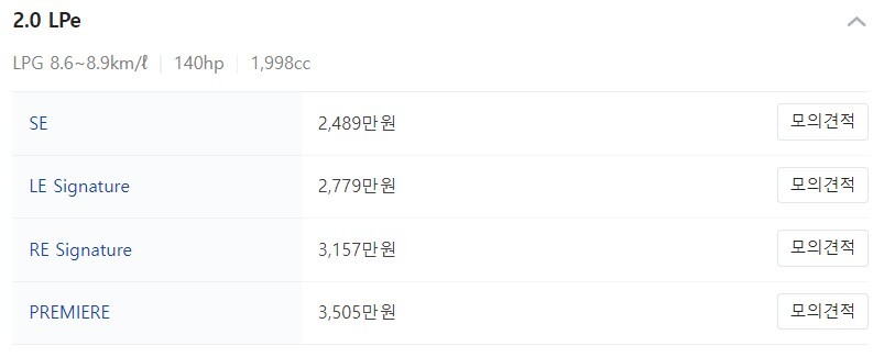 QM6 LPG의 가격은 2489만 원에서 시작됩니다.