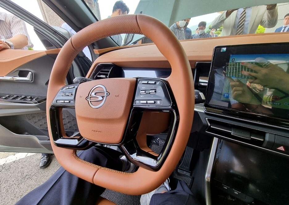국내 차량에서 카키 색상이 시트 등에서 적용된 적이 있지만 대시 보드를 포함한 스티어링까지 과감하게 적용된 적이 제 기억에는 거의 없었던 것 같은데..