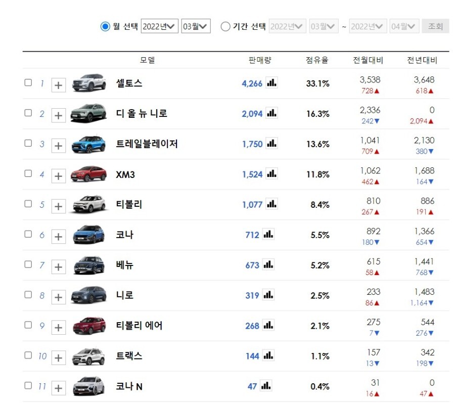 상대적으로 셀토스는 디젤 엔진도 단종되고 하이브리드 엔진 없이 외로운 싸움을 할 수 밖에 없었죠?