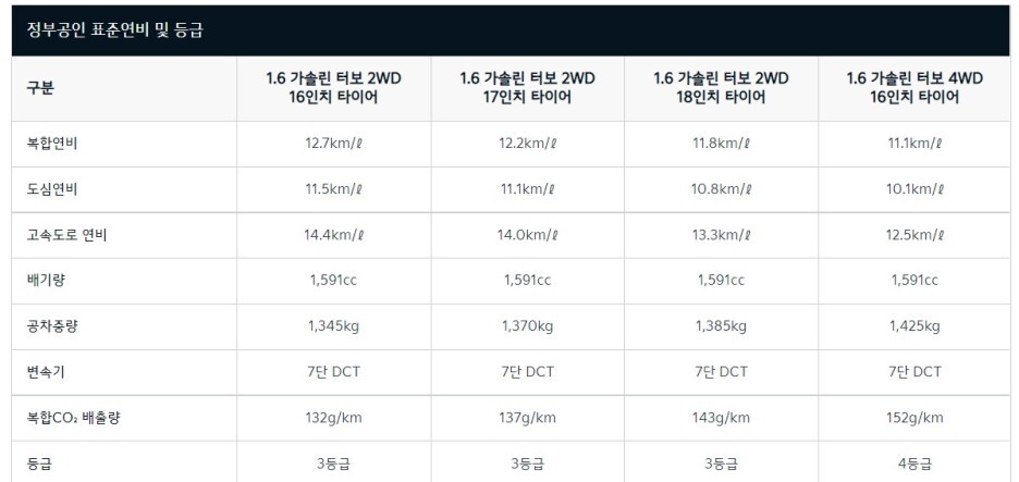 소형급에 1.6 가솔린 터보와 조합된 자동 8단 변속기는 꽤 매력적일 것 같네요.