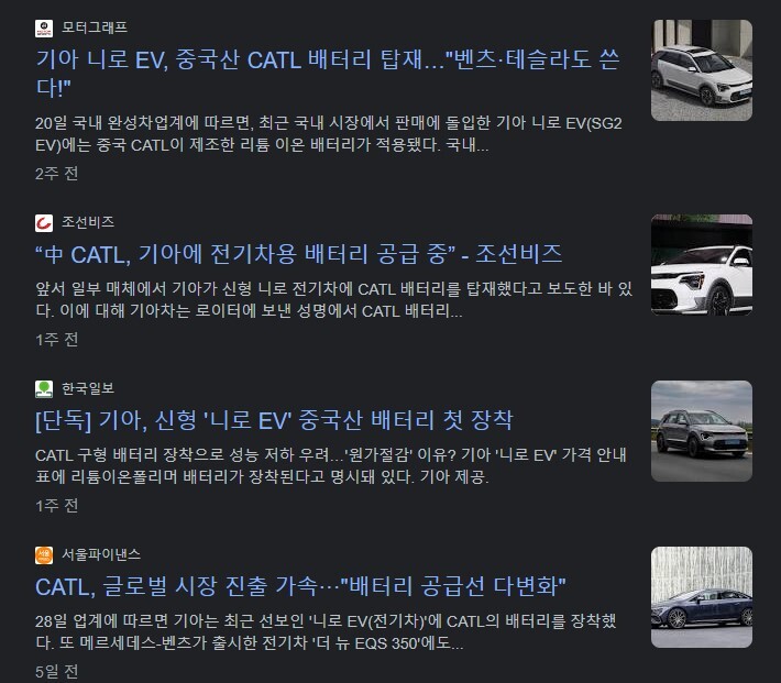 또한 기아 니로 전기차는 중국 CATL 배터리가 탑재되고 있는 상황입니다.