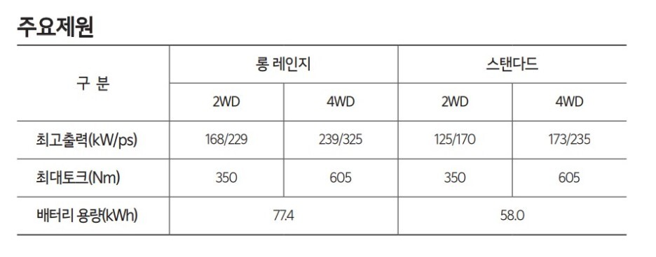 참고로 같은 롱레인지인 기아 EV6 롱레인지 보다 약 5kWh가 적은 용량이죠!