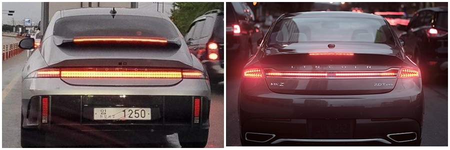 점등이 되면 좌우로 길게 연결되는 점선 디자인의 테일램프 영역에서 링커mkz가 떠오르네요!