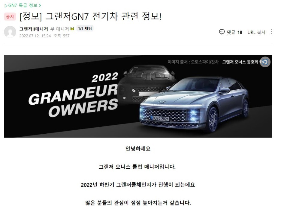 정확한 소식을 알려드리기 위해서 크로스로 확인하고 있는 그랜저 GN7 오너스 클럽에서도