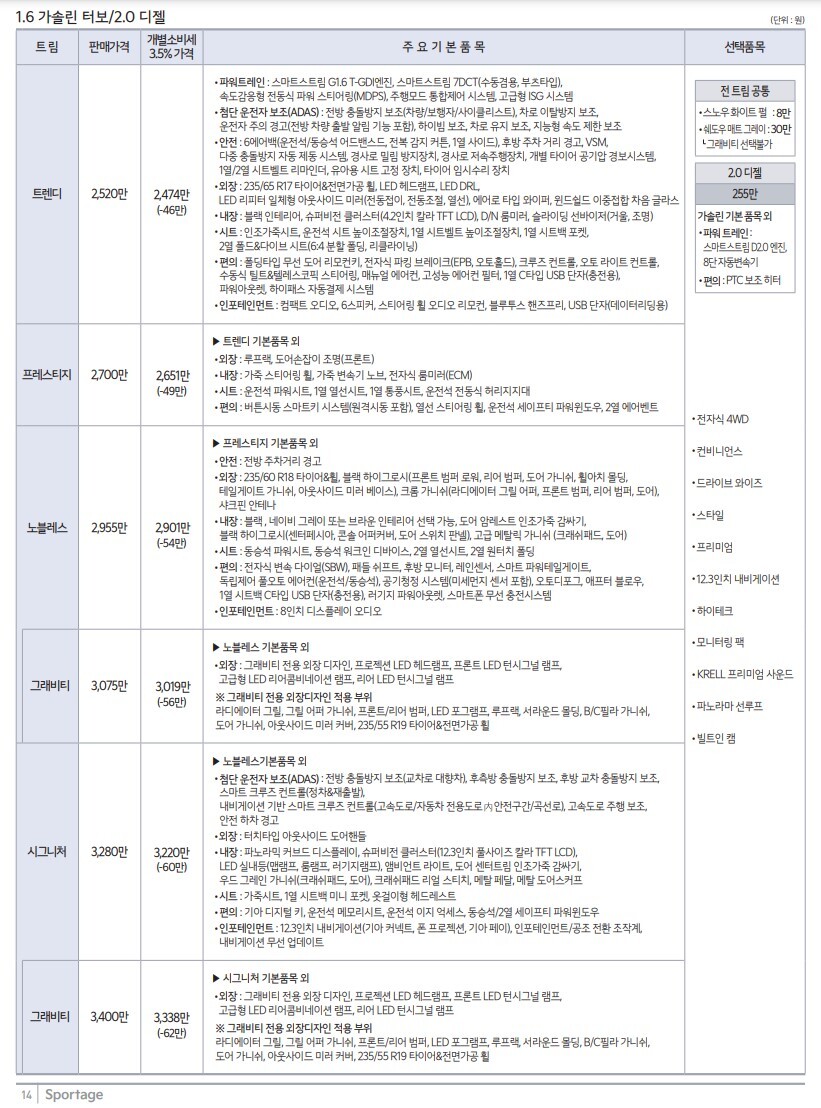먼저 스포티지 차량 가격부터 보면.