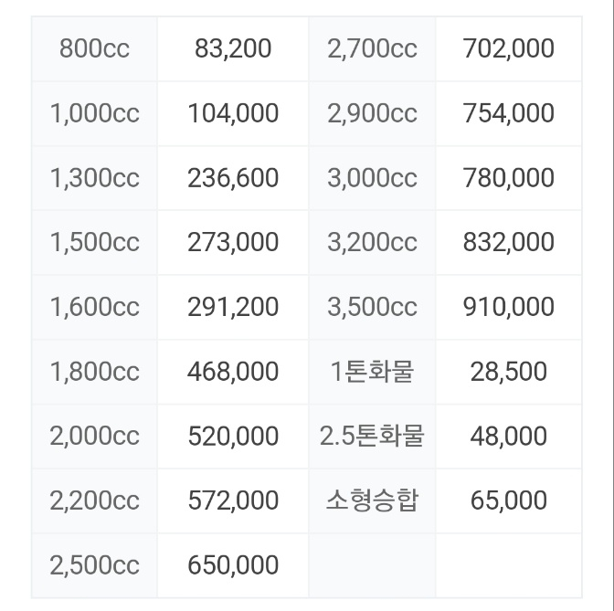 스포티지 LPG 2.0 연간 자동차세는 52만 원이며