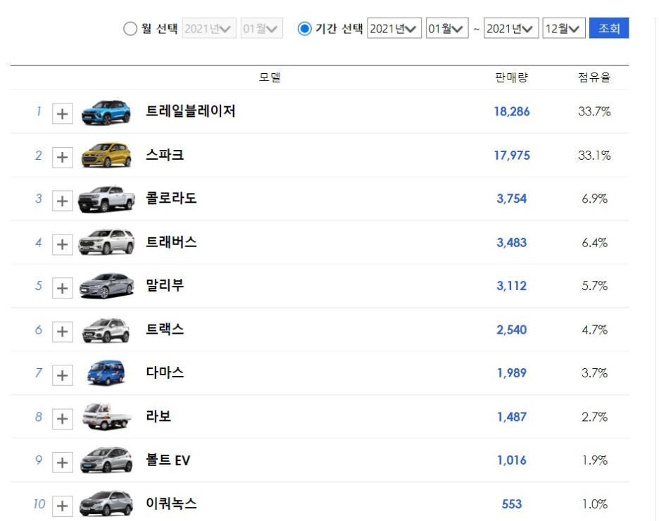 이런 상황에서 한국지엠도 희망의 불빛은 있는데, 의미 있는 판매량을 보여주는 효자 차량인 트레일 블레이저와 스파크, 콜로라도 3대의 차량이라고 할 수 있는데... 스파크 단종이니.. 제외해야 될 것 같아요!