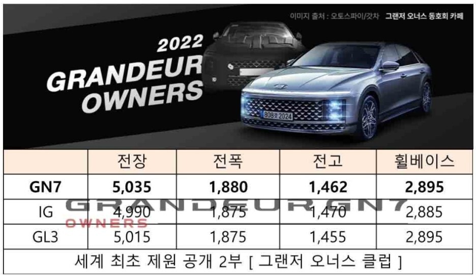 제가 벤더를 통해서 알아본 정보와 그랜저 GN7 오너스 클럽에서 공개한 정보를 비교해 보면
