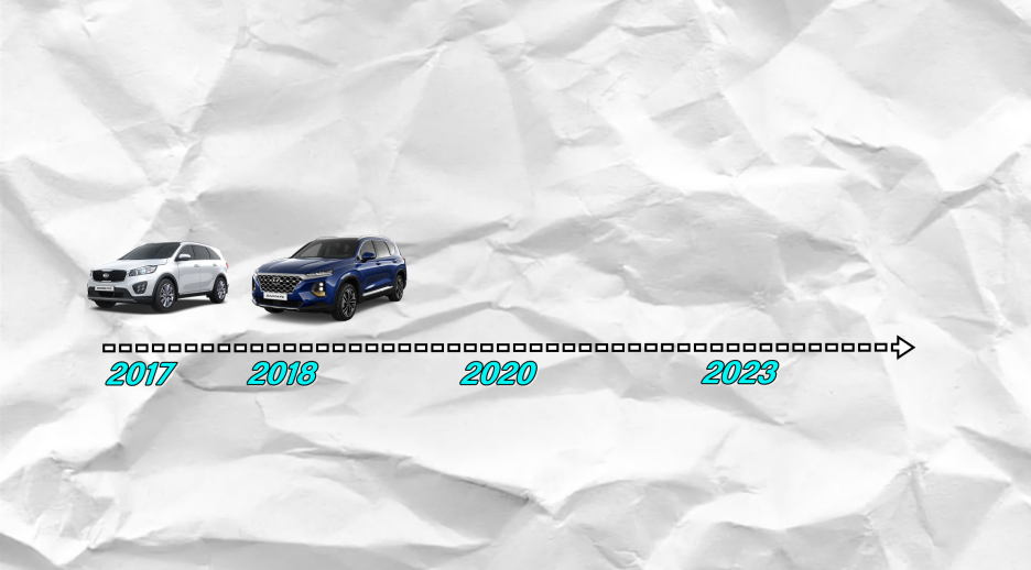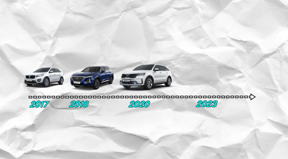 4세대 이전까지는 싼타페와 쏘렌토가 번갈아가면서 출시가 되었지만