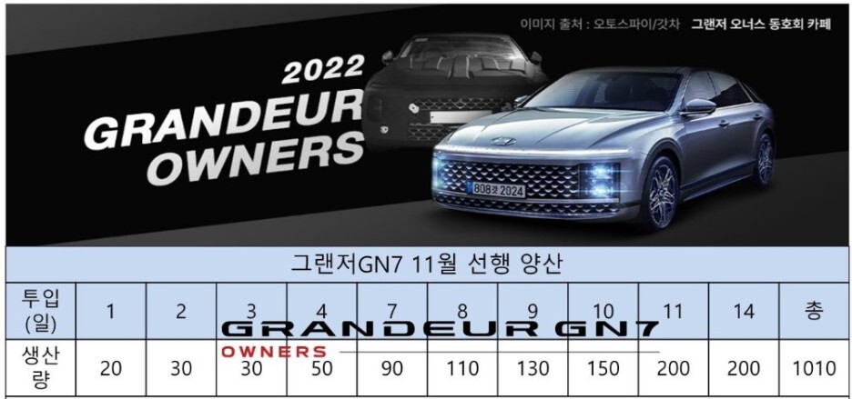 생산 및 출시 일정이 그랜저 GN7 오너스 클럽에서 확인되었습니다.