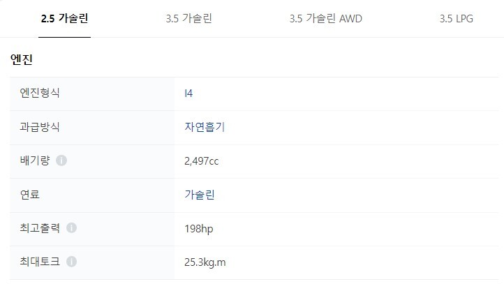 2.5 가솔린 3.5 가솔린, 4륜을 포함한 3.5 가솔린 가장 최상의 차량이 되겠죠?