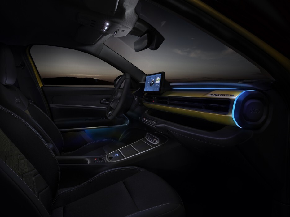 지프에서 가장 작은 전기차 어벤저의 실내는 이렇게 생겼습니다.