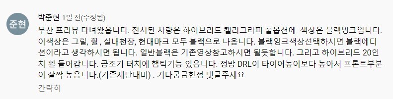 채널 댓글로 제보해 주신 후기를 보면 부산 프리뷰 현장에서는 1.6 하이브리드 캘리그래피 블랙잉가이 전시되고 있다고 합니다.