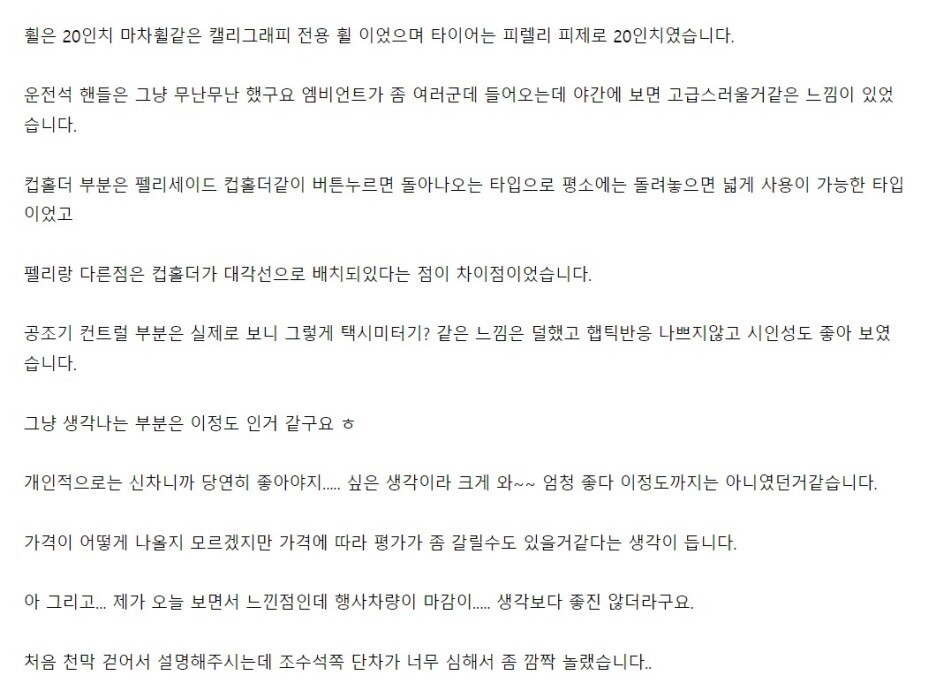다만 마감이 좀 아쉬웠다고 하는데, 양산차가 아니라서 선행 양산 과정에서 수정되어서 최종 양산차에서 좋은 품질을 기대해 보고 싶네요!